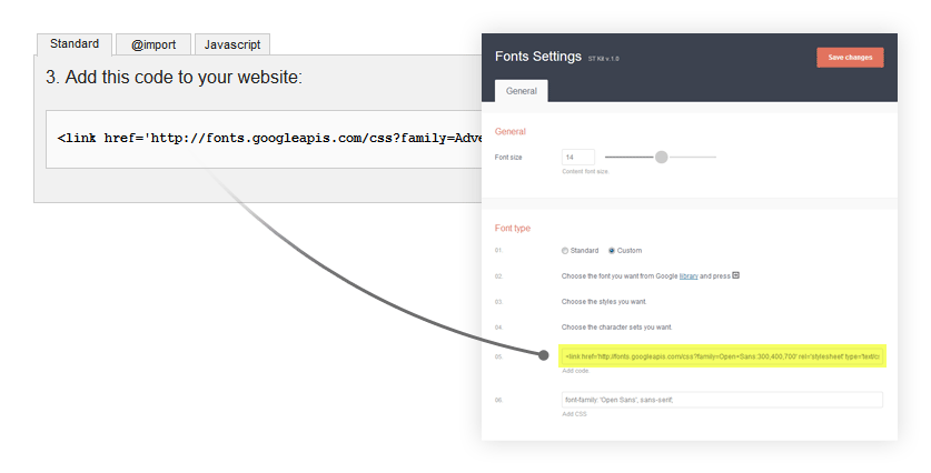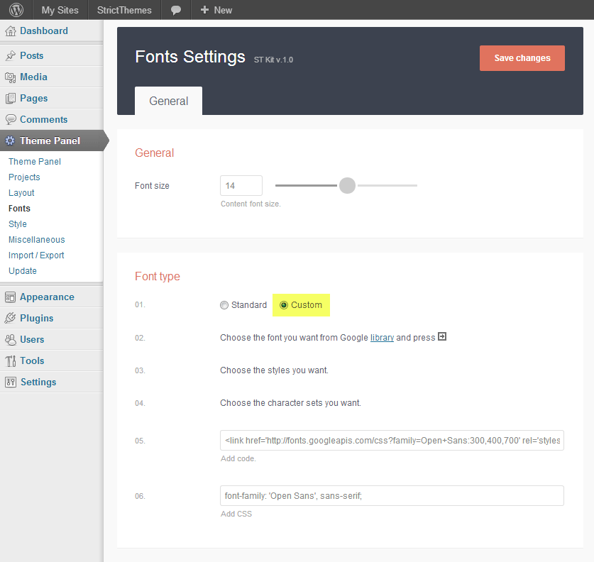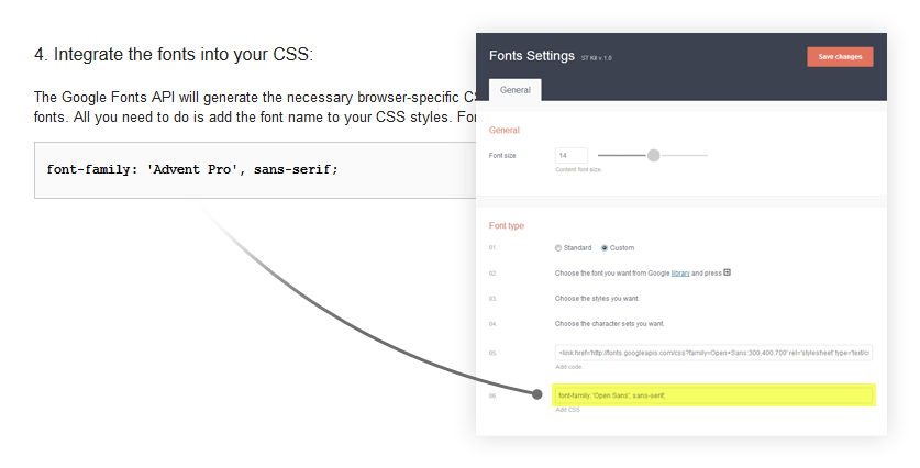 ST framework bring opportunity to switch between fonts or setup any custom font provided by Google Fonts library. Today ST framework compatible with more than 600 Google fonts.